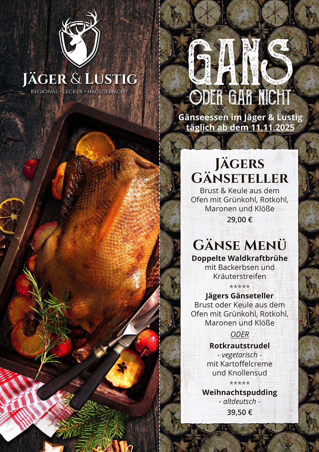 vom 20. bis einschließlich 29. Oktober 2025 bleibt unser Jäger & Lustig wegen denkmalgerechter Renovierungsmaßnahmen vorübergehend geschlossen.